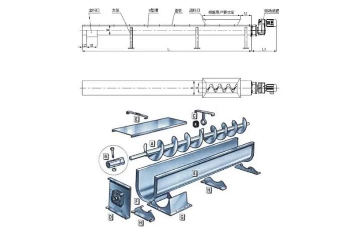 二、槽型螺旋輸送機主要結(jié)構(gòu)。