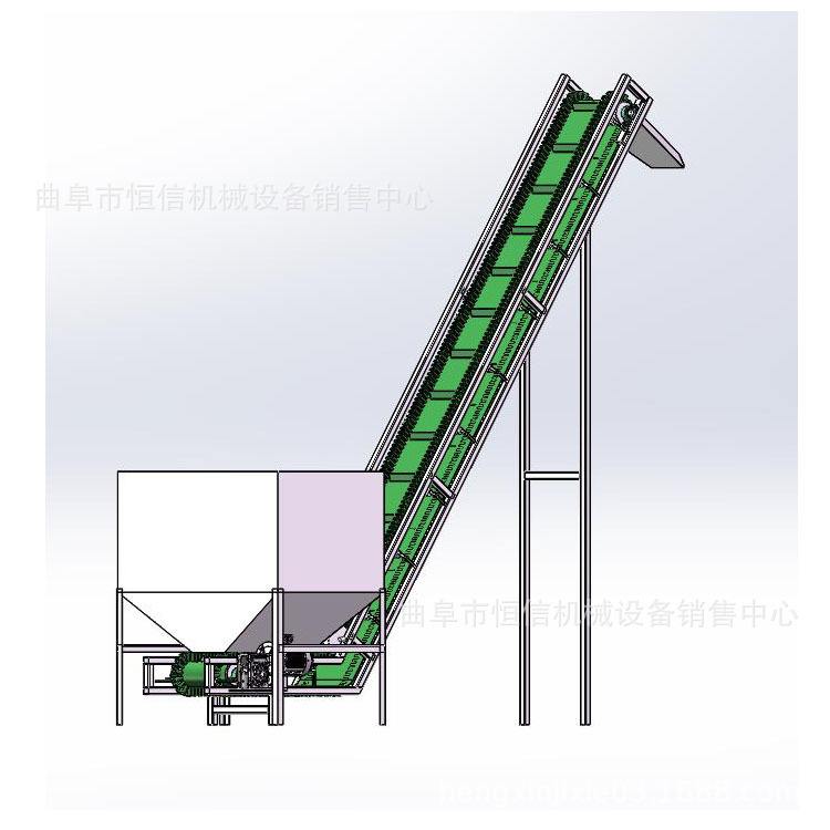 3、Z型帶式輸送機(jī)具有波紋壁,同時(shí)皮帶上設(shè)計(jì)了橫向隔板,周邊的裙邊設(shè)計(jì),在輸送過(guò)程時(shí)不易散落物料。